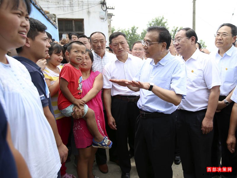 5日,李克強到安徽阜陽濛洼蓄洪區(qū)內(nèi)的鄭臺子莊臺視察防汛工作??偫頎繏爝@里村民的生活,接連詢問莊臺的堅固性是否經(jīng)過考驗?萬一蓄洪,食品藥品供給是否有保障?他強調(diào),蓄洪洼地絕不能變成民生洼地。我們一起努力讓你們的生活不斷好起來,逐漸變成民生高地。
