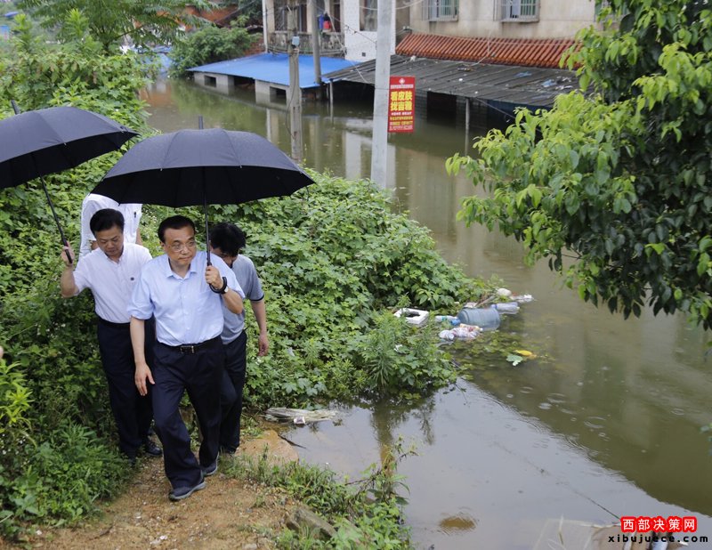 7月6日一早,李克強總理從湖南岳陽乘高鐵急赴湖北武漢,一路上大雨如注??偫硪幌萝?,直奔青山區(qū)長江干堤倒口湖堤段管涌現(xiàn)場指揮搶險救災。