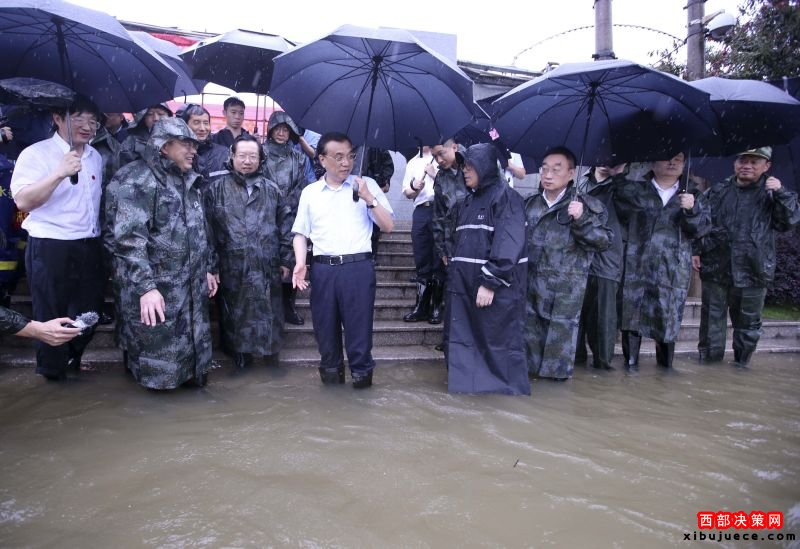 李克強冒大雨在武漢長江干堤現(xiàn)場指揮搶險救災