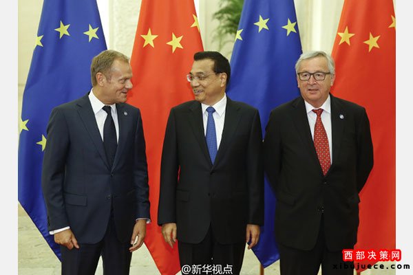 新華網(wǎng)北京7月12日電國務院總理李克強12日下午與歐洲理事會主席圖斯克、歐盟委員會主席容克共同主持第十八次中國歐盟領導人會晤。雙方就鞏固中歐政治互信、穩(wěn)步落實合作共識、加強國際和地區(qū)事務中的溝通與協(xié)調等深入交換意見。(據(jù)新華社“新華視點”微博報道)