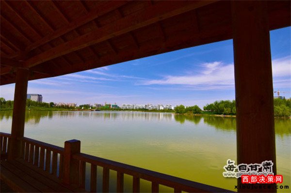 9月4日,“文博會(huì)網(wǎng)絡(luò)宣傳周”采訪團(tuán)75家媒體近百名記者一行走進(jìn)蘭州新區(qū)時(shí),就被碧波蕩漾的2號(hào)湖濱區(qū)所吸引,湖邊盛開(kāi)著紅的、黃的、紫的鮮花,湖里隱約可見(jiàn)各種彩色的錦鯉,游人或愜意地在湖邊垂釣,或聚集在觀景臺(tái)欣賞音樂(lè)噴泉,或悠然自得地泛舟湖上。
