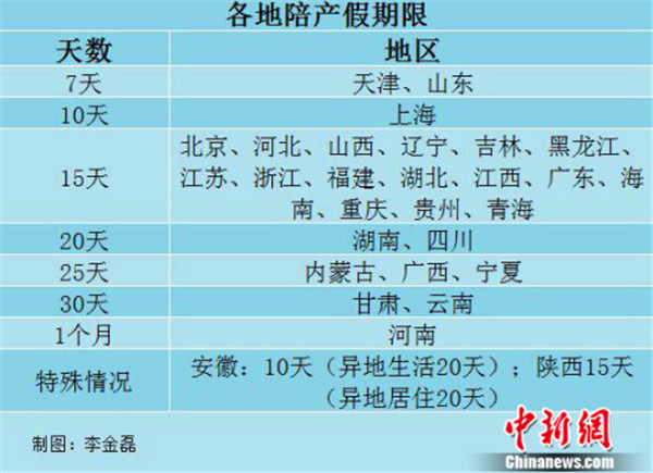 各地的陪產(chǎn)假能休多長時間?