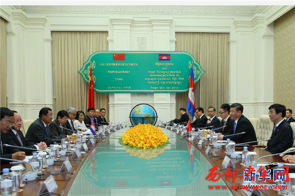 習近平強調(diào),由兩國老一輩領導人共同締造和精心培育的中柬友誼歷久彌堅。當前,中柬關系呈現(xiàn)積極發(fā)展勢頭,政治互信不斷加強,經(jīng)濟合作成果豐碩,多邊配合更加密切。中方始終珍視中柬傳統(tǒng)友誼,愿同柬方一道,不斷豐富中柬全面戰(zhàn)略合作伙伴關系內(nèi)涵,給兩國人民帶來更多實實在在的利益。
