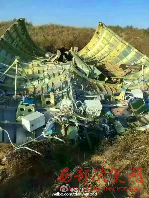 神舟十一號(hào)載人飛船在今天(17日)在酒泉衛(wèi)星發(fā)射中心,由長(zhǎng)征二號(hào)F遙十一運(yùn)載火箭搭載兩名航天員發(fā)射升空,發(fā)射取得圓滿成功,其分離的整流罩在榆林市榆陽區(qū)大河塔鎮(zhèn)云化綠能廠區(qū)東南方向找到。