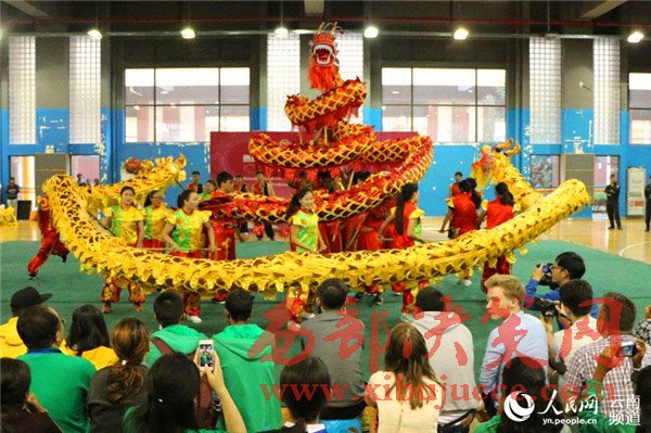 10月22日,云南師范大學體育學院的學生們手持單刀、木棍、長槍等,為參加第九屆“漢語橋”世界中學生中文比賽的海外選手表演了精彩的中華傳統(tǒng)武術。一些參賽選手也摩拳擦掌,登臺獻藝,與云南師范大學的學生們互相切磋,引得現(xiàn)場一片喝彩。