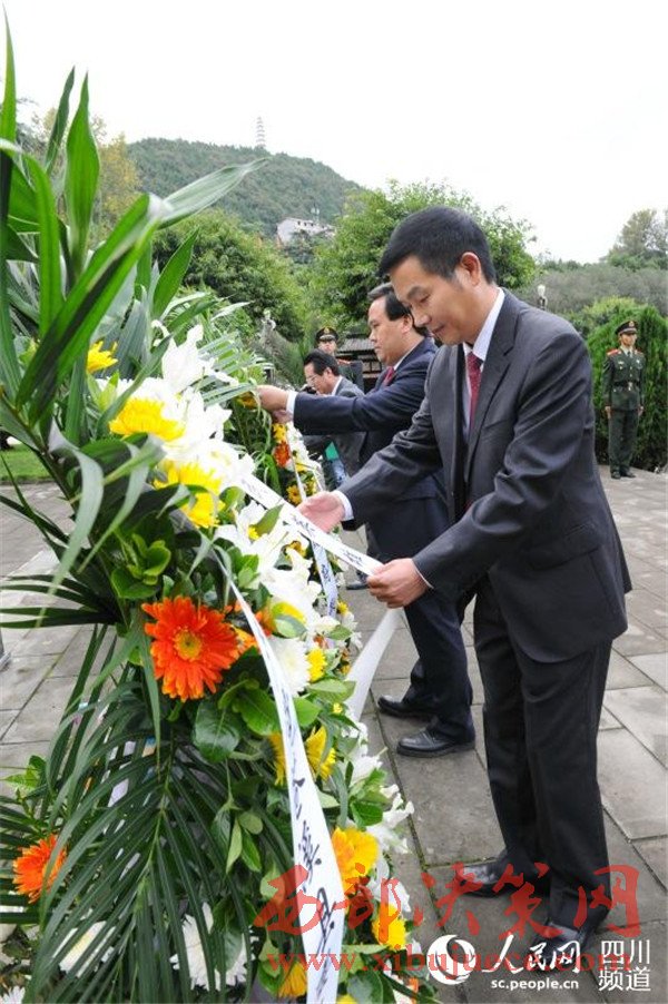 蒼溪縣委主要領導向革命先烈敬獻花籃