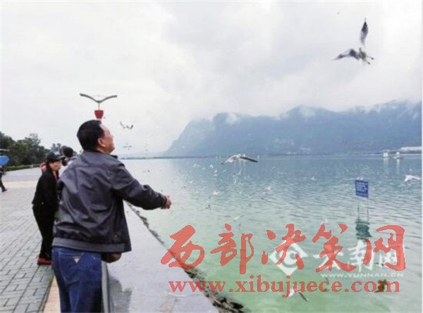 紅嘴鷗回來(lái)了!29日中午1時(shí)許,盡管天空下著小雨,但在海埂公園內(nèi)卻出現(xiàn)了人鷗相歡的一幕,大概500多只紅嘴鷗到岸邊覓食,數(shù)十位游客用鷗糧、面包等食物正在投喂。當(dāng)紅嘴鷗飛遠(yuǎn)一些的時(shí)候,賣(mài)鷗糧的人便開(kāi)始張嘴吆喝,沒(méi)想到這一吆喝,它們竟又飛回岸邊覓食。