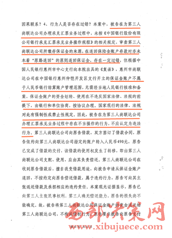 對(duì)此結(jié)果,谷奔公司并不滿意。李明告訴北京時(shí)間記者,本案的爭議焦點(diǎn)在于保證金賬戶的屬性上。“中行用非結(jié)算賬戶作結(jié)算使用就是違反國家的現(xiàn)行法律。人行惠州分行向法院出具的復(fù)函明顯態(tài)度曖昧,避重就輕,從而讓法官誤解而錯(cuò)判,令人遺憾。”