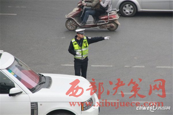 周日(20日)早高峰剛過,小寨十字上的交警正在示意由西向北行駛的車輛左轉。