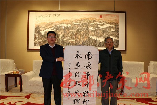 西部決策網(wǎng)訊(帥華鋒 杜杰 通訊員 趙高銪)11月21日,原全國政協(xié)常委、國家林業(yè)部常務副部長劉廣運,國家林業(yè)局老干局副局長、中國林業(yè)書法家協(xié)會副秘書長王德宗,人民日報海外版書畫藝術部主任助理、人民書畫藝術網(wǎng)外聯(lián)部副主任陳厚學一行,在慶陽市林業(yè)局、華池縣人民政府副縣長池軍以及南梁紅色景區(qū)建設管理局辦公室主任張全鈺、南梁革命紀念館館長聶明靜的親切陪同下,踏上陜甘邊革命根據(jù)地“紅色南梁”這片革命的熱土。