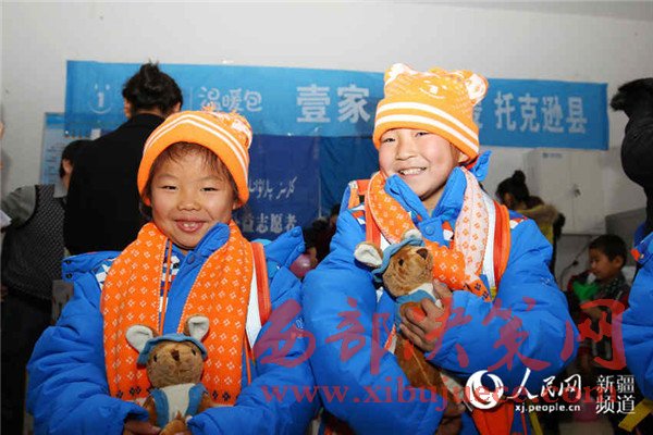 11月27日,50多名志愿者放棄周末休息時間,來到托克遜縣郭勒布依鄉(xiāng)和伊拉湖鎮(zhèn)的兩所小學開展“壹基金溫暖包”發(fā)放活動。今年,壹基金再度聯(lián)手社會各界愛心人士,發(fā)起為邊遠地區(qū)貧困兒童送溫暖包的行動,共為托克遜縣籌集到81個溫暖包。