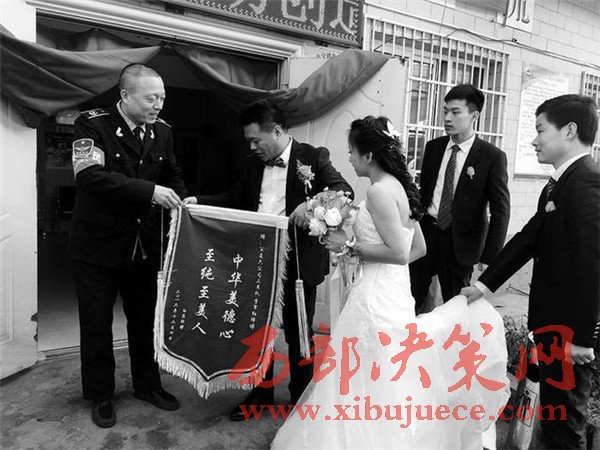 12月4日上午,一輛婚車突然開進(jìn)西安市辛家廟公交樞紐站,新郎白磊和新娘房佳歡將一面寫有“中華美德心至純至美人”字樣的錦旗,送到了211路司機(jī)李軍紅手中,這一新鮮場(chǎng)面頓時(shí)引起了眾人圍觀。