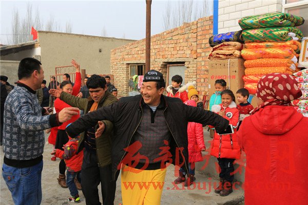 “我‘親戚’的女兒結(jié)婚,這是大喜事!”一大早,博湖縣委書(shū)記董斌就來(lái)到巴哈爾古麗·吾斯曼家賀喜?;槎Y上,董斌向“親戚” 巴哈爾古麗·吾斯曼及新人送來(lái)了祝福,送上禮金,并且表示婚禮辦得熱鬧喜慶,各族群眾互相走動(dòng),互相拜訪,像一家人一樣其樂(lè)融融。