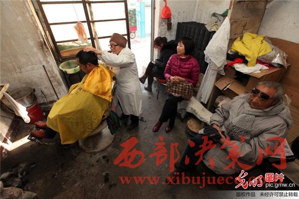 蔡瑞云幾十年來(lái)一直在河南許昌市區(qū)解放路與新興路交會(huì)處經(jīng)營(yíng)著她的"老中青理發(fā)店"。雖然店面只有10平方米,每月房租300元,但每次理發(fā)收費(fèi)卻只有2元,讓人感受到的是溫暖。