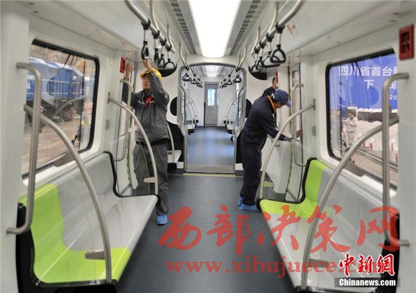 此外,列車整體結構也采用輕量化設計,全線無人駕駛,能像地鐵、動車組一樣靈活編組。列車在懸掛裝置設有兩級保護,還在駕駛室內設有緊急逃生筒和故障救援門,可實現縱向、橫向及垂向的三維救援,確保了突發(fā)情況下乘客的安全。圖為車廂內也繪有“熊貓”圖案。