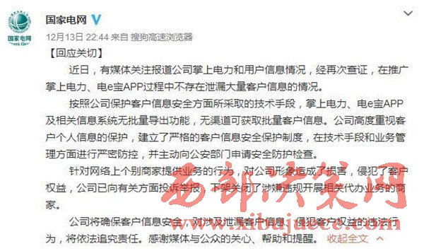 原標(biāo)題:國(guó)家電網(wǎng)被爆千萬用戶信息泄露?國(guó)網(wǎng)緊急開會(huì)后深夜回應(yīng)