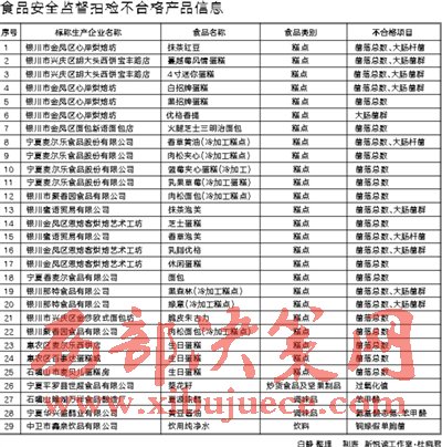 記者12月13日獲悉,寧夏回族自治區(qū)食品藥品監(jiān)督管理局日前再公布277批次生產(chǎn)環(huán)節(jié)食品監(jiān)督抽檢結(jié)果,其中合格248批次,不合格29批次,抽樣不合格最多的是糕點(diǎn)。