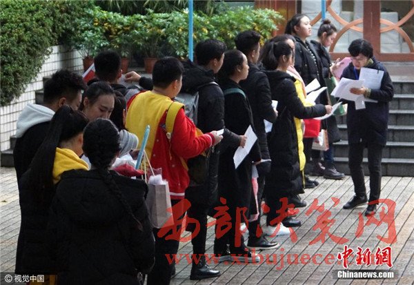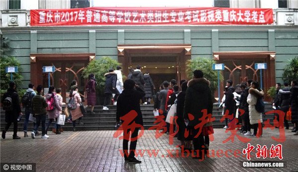 12月14日,重慶市,沙坪壩區(qū),重慶大學(xué)美視電影學(xué)院考點(diǎn),考生們走進(jìn)考場(chǎng)。當(dāng)天,重慶市2017年普高藝術(shù)類招生專業(yè)考試開(kāi)考,考場(chǎng)外云集了大量夢(mèng)想明星生涯的美女帥哥以及前來(lái)陪伴的親朋好友。