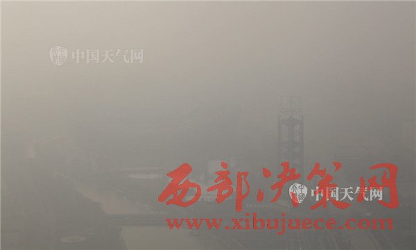 霧霾中的北京地標(biāo)建筑之一玲瓏塔。