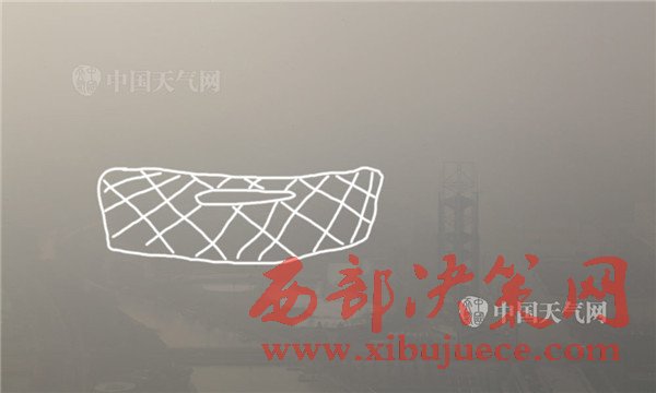 2016年12月19日早晨,北京持續(xù)空氣重污染。記者登上246.8米高的北京奧林匹克塔,鳥(niǎo)瞰北京城,發(fā)現(xiàn)咫尺之遙的鳥(niǎo)巢、水立方等奧運(yùn)場(chǎng)館和城市地標(biāo)建筑被霾“吞沒(méi)”,消失不見(jiàn)。圖為鳥(niǎo)巢。