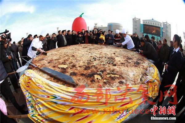 當(dāng)天現(xiàn)場(chǎng),三項(xiàng)上海大世界基尼斯紀(jì)錄“最大的庫麥其”、“萬人金蛋宴”、“60000枚且末紅棗核拼貼而成的油畫”同時(shí)亮相,引來了市民的圍觀。