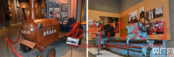圖(左)1958年,沈陽(yáng)農(nóng)業(yè)機(jī)械廠制造的新中國(guó)第一臺(tái)18馬力蒸汽拖拉機(jī)。圖(右)1959年,沈陽(yáng)第一機(jī)床廠生產(chǎn)的C650型車床。