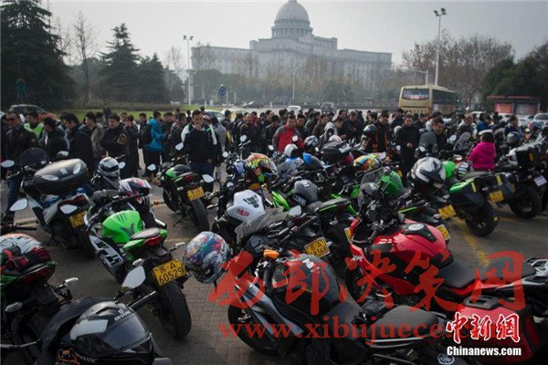 1月2日,南京二百多位機(jī)車愛(ài)好者駕駛著他們的愛(ài)車從雨花臺(tái)南門(mén)廣場(chǎng)集合出發(fā),前往郊區(qū)游玩,超炫超酷的外形、獨(dú)特的馬達(dá)轟鳴聲,吸引了過(guò)往市民的圍觀。
