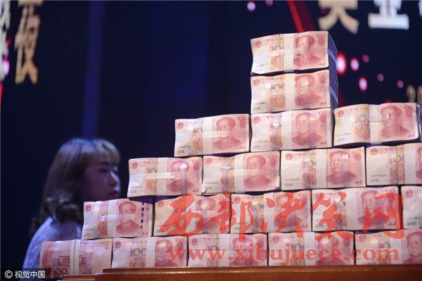 2017年1月4日,太原,一家美容化妝品企業(yè)在公司年會上邀請明星侯耀華為員工現(xiàn)場派發(fā)福利,現(xiàn)場成捆大鈔堆積如山,百萬余元現(xiàn)金直接發(fā)給了優(yōu)秀的員工。