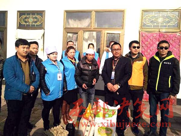 1月13日,寧夏海興義工聯(lián)合會銀川辦事處的工作人員來到銀川市賀蘭縣南梁臺子鐵東村、鐵西村,慰問當?shù)?戶孤寡貧困家庭,捐贈米面油和棉衣等生活物品, “大娘,還有半個月就過年了,這是咱們企業(yè)的一點心意,祝您老身體健康,吉祥如意”。這次慰問空巢老人和貧困家庭的單位有:銀川培訓學院、銀川美年大健康體檢醫(yī)院、海原馬軍飯莊、搏港旅游公司、寧夏雙玉農業(yè)科技有限公司、寧夏塞杞源苗木專業(yè)合作社。今年年初,他們根據(jù)南梁臺子鄉(xiāng)提供的貧困戶名單,結合入戶走訪,最終確定了馬寶林、馬萍霞等8戶殘疾、孤寡貧困家庭。由寧夏蕊杰伯港旅游有限公司、 銀川美年大健康體檢醫(yī)院等7家協(xié)會成員企業(yè)共同出資購買生活物品,逐戶慰問,反哺社會。