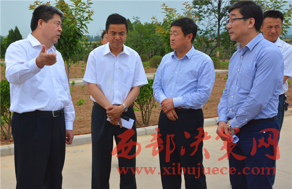 縣委書記何玲縣長張新科在搭載式扶貧試點(diǎn)企業(yè)千陽縣海升蘋果給檢查的上級領(lǐng)導(dǎo)匯報(bào)工作.