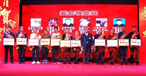 年會(huì)上,張海龍會(huì)長、李明義執(zhí)行會(huì)長一起向2016年新增常務(wù)副會(huì)長、副會(huì)長、理事授牌;商會(huì)黨支部書記、秘書長王惠選宣讀了寧夏陜西商會(huì)關(guān)于表彰獎(jiǎng)勵(lì)2016年度特殊奉獻(xiàn)獎(jiǎng)、誠信企業(yè)獎(jiǎng)、創(chuàng)新企業(yè)獎(jiǎng)、愛會(huì)敬業(yè)獎(jiǎng)企業(yè)單位的決定。自治區(qū)人民檢察院原檢察長師夢(mèng)雄向榮獲商會(huì)特別奉獻(xiàn)獎(jiǎng)的張海龍會(huì)長、李明義執(zhí)行會(huì)長頒獎(jiǎng);張海龍會(huì)長、李明義執(zhí)行會(huì)長、黨支部書記、秘書長王惠選分別向11個(gè)榮獲誠信企業(yè)、11個(gè)榮獲創(chuàng)新企業(yè)、11個(gè)榮獲愛會(huì)敬業(yè)企業(yè)單位頒獎(jiǎng)。