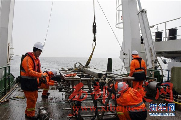 本次“海洋六號”南極科考,是自1990至1991年我國首次南極南大洋綜合地質(zhì)地球物理調(diào)查后第二次南極海域綜合地質(zhì)地球物理科學(xué)考察。圖為科考人員完成多道地震調(diào)查后,從后甲板收回科考作業(yè)裝備。