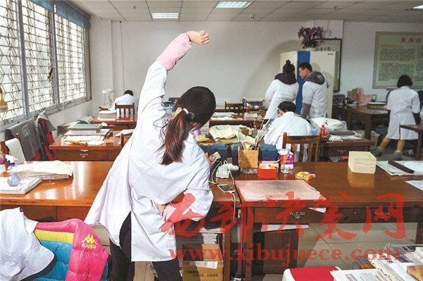 古籍修復(fù)工作現(xiàn)在仍是冷門行業(yè),修復(fù)師們頭上頂著“大國(guó)工匠”的光環(huán),背后卻有很多的艱辛。古書拆裝過程中會(huì)遇到大量陳年的灰塵、蟲卵等,打噴嚏、犯鼻炎、過敏等現(xiàn)象時(shí)有發(fā)生;保持伏案姿勢(shì)一整天,幾乎所有的修復(fù)師都有頸椎和腰椎疾病。而古籍修復(fù)從業(yè)人員的待遇并不高,對(duì)年輕人缺乏吸引力。每年會(huì)有許多實(shí)習(xí)生來到中心實(shí)習(xí),但實(shí)習(xí)結(jié)束,不少學(xué)生就離開這個(gè)行業(yè),能夠留下來的,寥寥無幾,更多人把它當(dāng)作副業(yè)或者興趣愛好。
