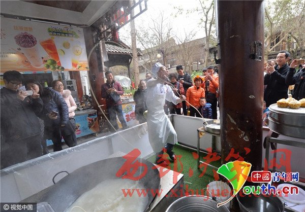 2月22日,田波如往常般工作,面館門口聚集了里外三層的圍觀者。正在拉面的田波,表演的正是網(wǎng)絡(luò)上廣為流傳的那個版本。妖嬈的動作,嫵媚的表情,配上黃齡的那首《癢》,整個畫面活色生香。