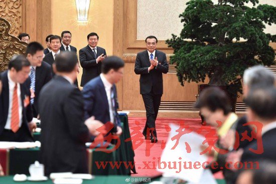 李克強(qiáng)總理9日上午來(lái)到十二屆全國(guó)人大五次會(huì)議陜西代表團(tuán),與代表共同審議報(bào)告。