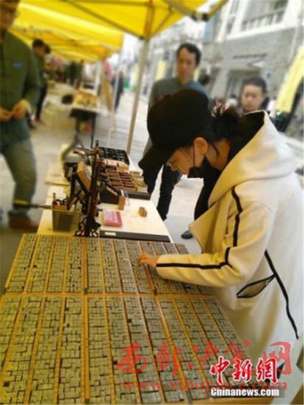 資料圖:作為四大發(fā)明之一的活字印刷術(shù),它的展示吸引了一些市民的駐足觀看。
