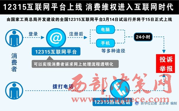 由國(guó)家工商總局開發(fā)建設(shè)的全國(guó)12315互聯(lián)網(wǎng)平臺(tái)14日試運(yùn)行并將于15日正式上線,消費(fèi)者在平臺(tái)上登錄注冊(cè)后可以通過(guò)電腦、手機(jī)等多種途徑24小時(shí)進(jìn)行投訴、舉報(bào)。