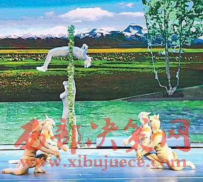 一個(gè)個(gè)驚險(xiǎn)刺激的雜技表演,一段段奔放激情的藏韻舞蹈,令觀眾目不暇接。27名玉樹(shù)歌舞演員,38名安徽雜技演員,在舞臺(tái)上高度默契,完美呈現(xiàn)了《雪豹王子》的藝術(shù)構(gòu)思。