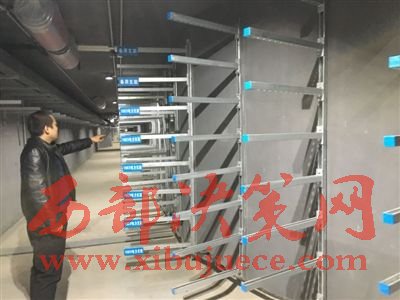 這個寬5、6米,高10多米的地下綜合管廊艙左側(cè)架設(shè)了一層層電纜支架、右側(cè)則是一條直徑約1米的藍色管道。工作人員介紹,這些支架是用來架設(shè)各類電纜線的,而那條藍色管道是排污水管。管廊頂部還設(shè)置了排氣設(shè)施,那是用來防潮的。據(jù)了解,目前,地下管廊一期主體結(jié)構(gòu)16公里已完工,學院路、高教路南段、毛勝寺路雨污水艙已投入使用。
