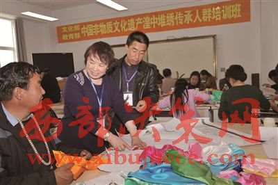 喬應(yīng)菊在堆繡傳承人群培訓(xùn)班上向?qū)W員們無私傳授。