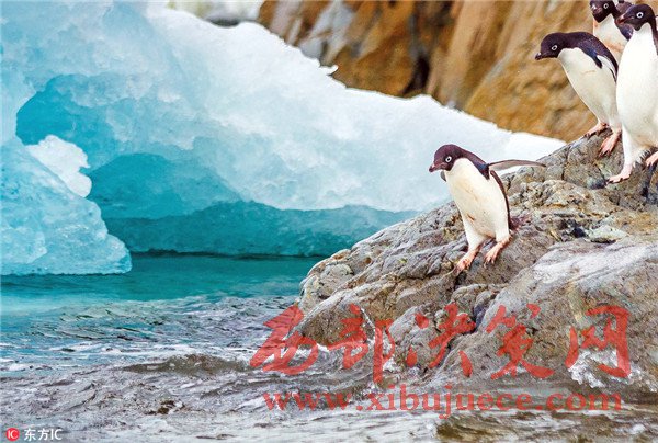 南冰洋企鵝排隊(duì)跳水前畫面溫馨有趣