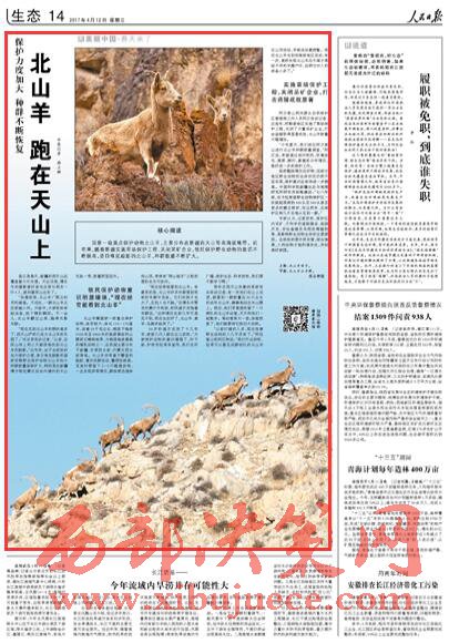 國家一級重點保護動物北山羊,主要分布在新疆西天山等高海拔地帶。近年來,隨著新疆實施草場保護工程、關閉采礦企業(yè),牧民保護野生動物的意識不斷提高,昔日難覓蹤影的北山羊,種群數量不斷擴大。