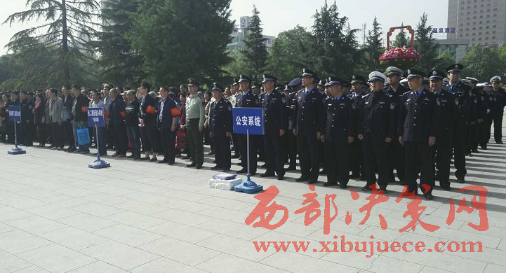 西部決策網(wǎng)-西部大開(kāi)發(fā)訊(帥華鋒 杜杰)5月6日上午,渭濱區(qū)在炎帝園廣場(chǎng)隆重舉行打造“經(jīng)二路平安示范一條街” 夏季攻堅(jiān)行動(dòng)推進(jìn)會(huì),市委政法委及區(qū)委、區(qū)人大、區(qū)政府、區(qū)政協(xié)相關(guān)領(lǐng)導(dǎo)出席現(xiàn)場(chǎng),公安、執(zhí)法、區(qū)級(jí)部門(mén)、平安單位、社區(qū)志愿者組成五個(gè)方陣共300余人參加會(huì)議。
