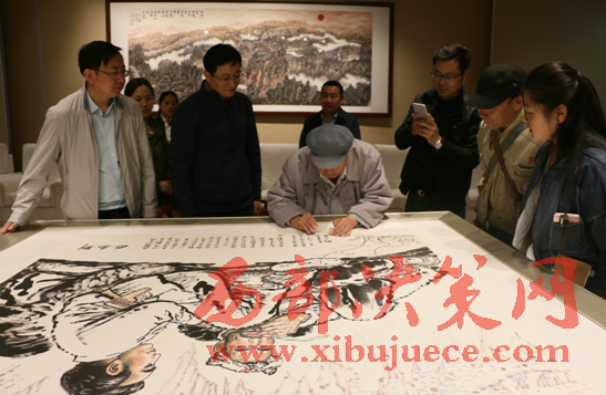 一直以來,黃土畫派藝術(shù)研究院院長劉文西老先生對(duì)南梁革命紀(jì)念館的愛國主義教育和革命傳統(tǒng)教育事業(yè)給予鼎力支持。在2014年9月28日“陜甘邊區(qū)蘇維埃政府成立80周年”慶典活動(dòng)、南梁革命紀(jì)念館新館開館之際,劉老為紀(jì)念館捐贈(zèng)了自己的得意畫作。南梁臨別前,劉老心懷老區(qū)、由心感念,在紀(jì)念館綜合展廳陳展的國畫作品《奠基禮·直羅大捷》上蓋章題寫“奠基禮·直羅大捷 一九七七年作 二零一七年在南梁補(bǔ)作 劉文西”27字,并為劉志丹專題展廳國畫作品《劉志丹》紅印蓋章,以示參觀留念!