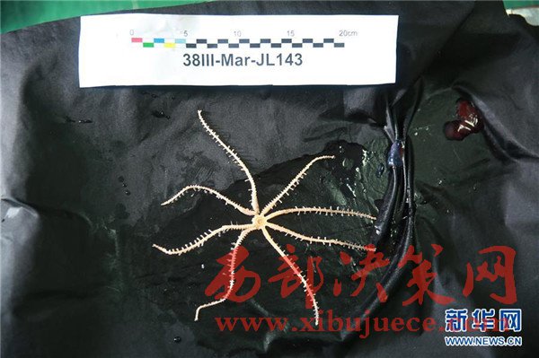 這是5月23日拍攝的“蛟龍”號在馬里亞納海溝帶回的生物樣品海星。
