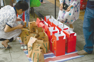 端午節(jié)將至,馬鞍東路“粽子江湖”再次重現(xiàn)。這里車(chē)來(lái)人往,一派繁忙景象。這條街上,無(wú)論什么店鋪,在端午節(jié)到來(lái)的前半個(gè)月都會(huì)臨時(shí)改行賣(mài)粽子,而且十有八九都以“婆婆”命名。馬婆婆、杜婆婆、陳婆婆、楊婆婆……“婆婆粽子”是這里的特色。眾多婆婆粽子中,有一家店今年脫穎而出——手機(jī)直播賣(mài)粽子。
