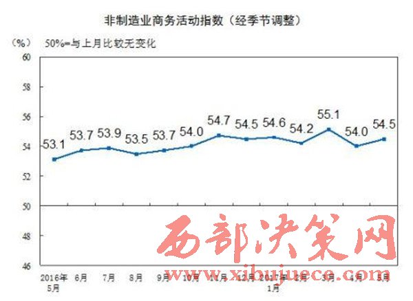 記者5月31日從中國(guó)物流與采購(gòu)聯(lián)合會(huì)獲悉,今年5月份中國(guó)非制造業(yè)商務(wù)活動(dòng)指數(shù)為54.5%,環(huán)比上升0.5個(gè)百分點(diǎn)。分析稱(chēng),這表明中國(guó)經(jīng)濟(jì)結(jié)構(gòu)優(yōu)化升級(jí)的動(dòng)力在進(jìn)一步增強(qiáng)。