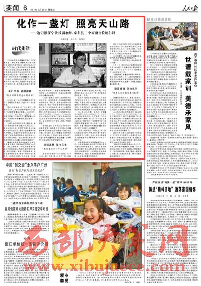 “當時,學校經常為師資力量發(fā)愁。姚仁漢老師過來后提出建立‘名師工作室’,建立起常態(tài)化的‘傳幫帶’機制,通過和鎮(zhèn)海中學的互動交往,通過寧波援疆教師的示范幫教,讓這里的年輕老師可以接過‘接力棒’。”庫車縣教育局局長、時任庫車縣二中校長郭志清說,“他以身示范,把沿海先進教學理念送到邊疆,讓我們受益匪淺。”