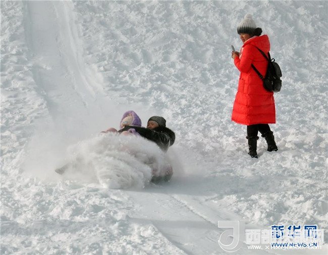 11月25日,在內(nèi)蒙古牙克石鳳凰山開(kāi)雪節(jié)現(xiàn)場(chǎng),人們?cè)隗w驗(yàn)滑雪圈。