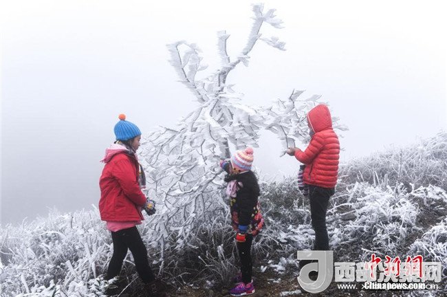 12月17日,福建省長汀縣天井山迎來首場霧凇,吸引不少游客前來觀賞。根據(jù)天氣預(yù)報(bào)顯示,未來的一周,長汀縣最低氣溫低至零下2攝氏度,部分高海拔地區(qū)將出現(xiàn)凍雨現(xiàn)象。(張平 攝)